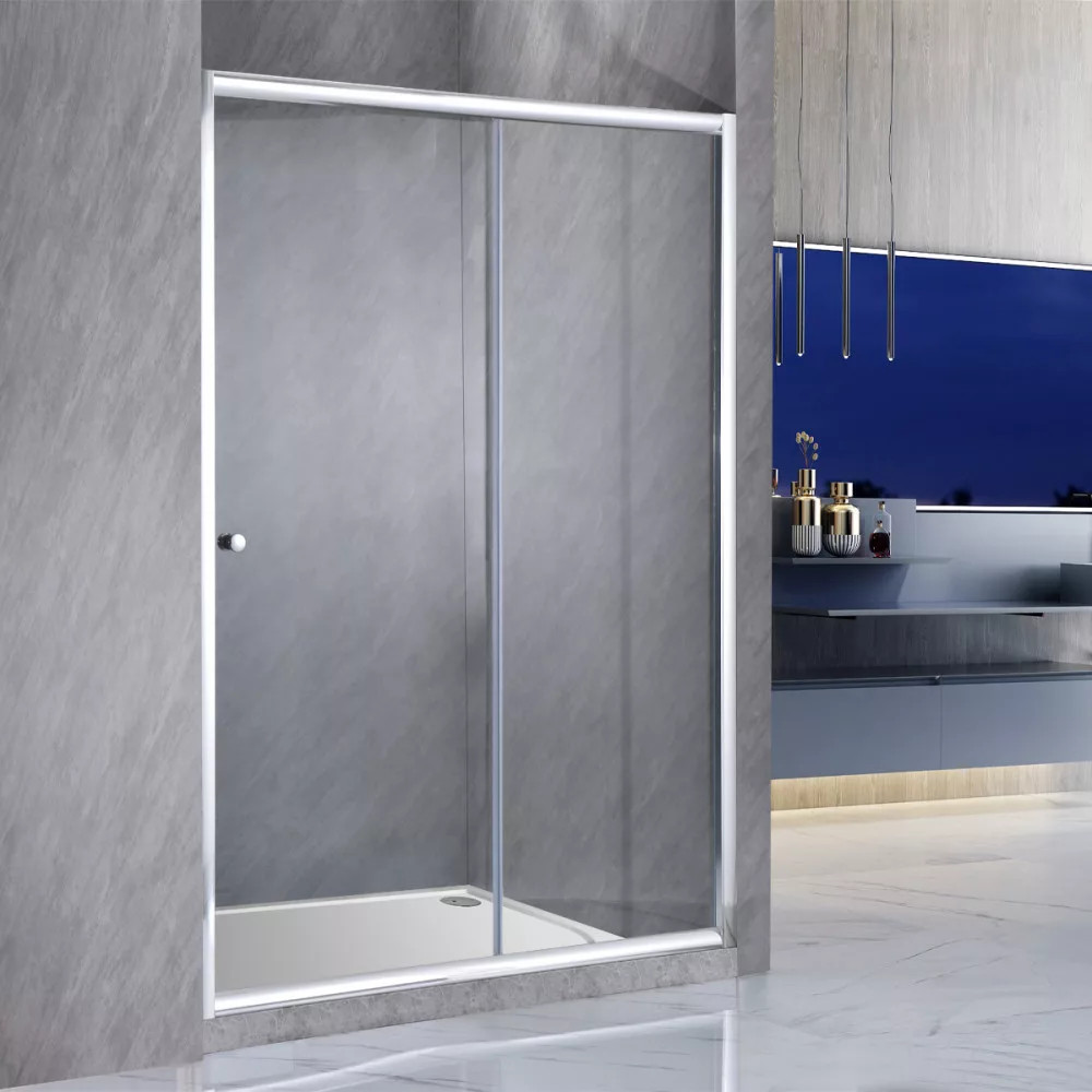 A termék állítható szélességű mindkét oldalon 15 mm-el. A zuhanyajtó krómozott alumínium profillal és duplagörgőkkel van ellátva. Univerzálisan szerelhető jobb vagy akár balos irányba is.