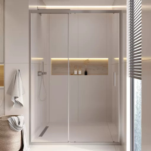 HD Dante 130x195 cm, 130 cm széles toló zuhanyajtó 6 mm vastag vízlepergető biztonsági üveggel, krómozott elemekkel, 195 cm magas