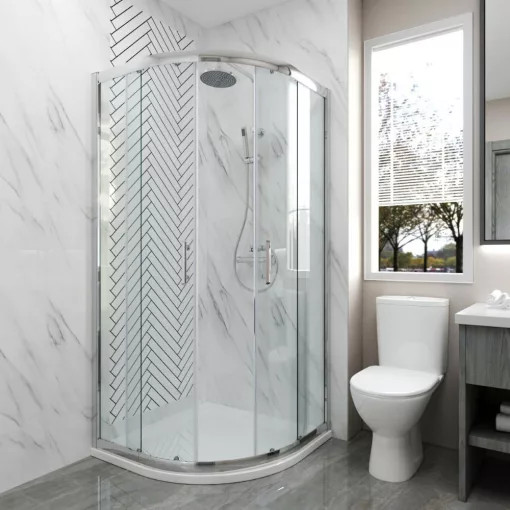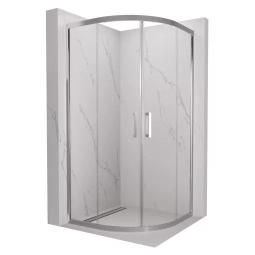 HD Elio 90x90 íves két tolóajtós zuhanykabin 6 mm vastag vízlepergető biztonsági üveggel, krómozott elemekkel, 190 cm magas