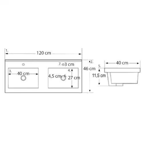 A csomag részét képzi egy méretben passzoló kerámia mosdó is, így ezt nemkell külön beszereznie. A mosdó elkészítésekor kiváló minőségű kerámiát alkalmaztak, ezzel garantálva az időtállóságot. A mélymedencékkel ellátott dupla medencés mosdóban két csaptelepnek van kialakított hely. Ebből adódóan nagyobb családok számára is ideális választás hiszen így nem kell sorban állni egy-egy kézmosás alkalmakor.