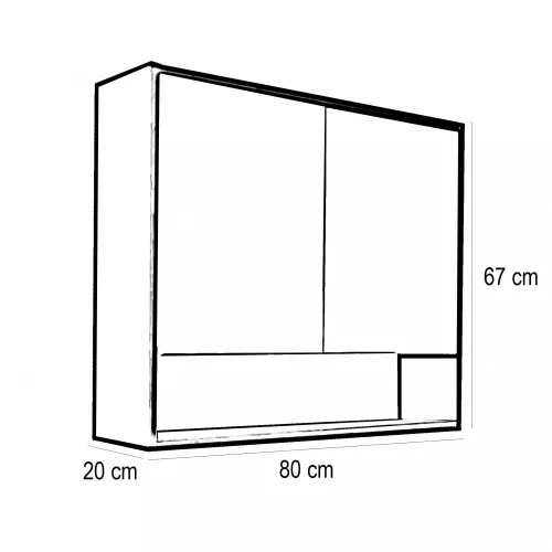 A felső bútorban az ajtós szekrényen kívűl egy nyitott polc is megtalálható, ezzel még kényelmesebbé téve a használatát. A termék tagadhatatlan előnye, hogy alsó és felső bútorának köszönhetően akár további bútorok beszerzése nélkül is minden igénynek eleget tesz. A termék magas minőségű bútorlapból készül és színben passzoló élzárókkal van ellátva. A fürdőszoba bútor felfüggesztett kivitelben kapható.
